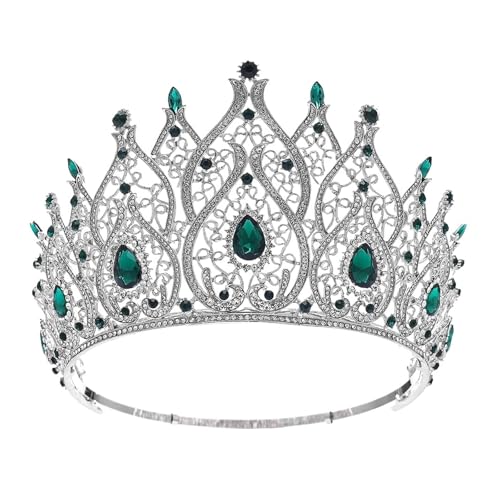 Grande Couronne De Mariage En Strass, Diadème, Coiffe De Reine, Princesse, Accessoires For Cheveux De Concours Délicat Confortable(Green)