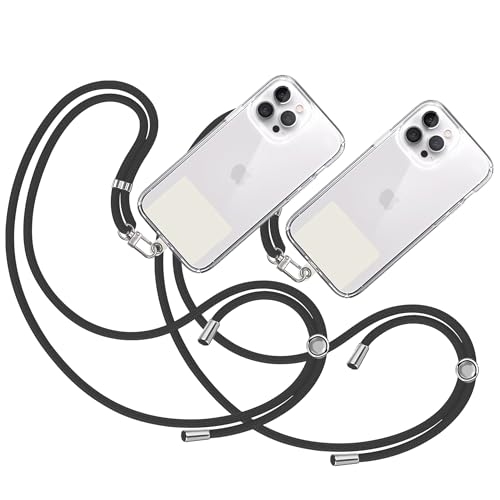 TBOC 2X Cordon Universel pour Mobile [Noir] avec Patch de Fixation [Blanc Ice] et Sangle de Suspension Amovible Réglable et Résistante Compatible avec Toutes les Marques Téléphone Mode Accessoires