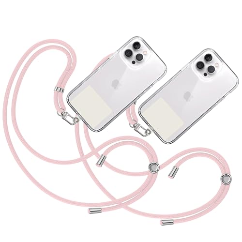 TBOC 2X Cordon Universel pour Mobile [Rose Clair] avec Patch de Fixation [Blanc Ice] et Sangle de Suspension Amovible Réglable Résistante Compatible avec Toutes les Marques Téléphone Mode Accessoires