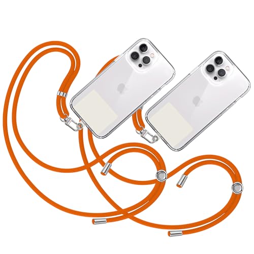 TBOC 2X Cordon Universel pour Mobile [Orange] avec Patch de Fixation [Blanc Ice] et Sangle de Suspension Amovible Réglable et Résistante Compatible avec Toutes les Marques Téléphone Mode Accessoires