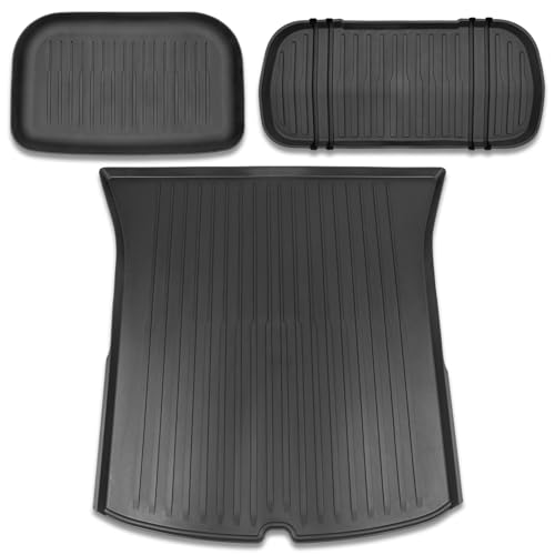 CYBERBEANS Tapis De Coffre Tout Temps pour Nouvelle 2025 2026 Tesla Model Y Juniper Tapis De Coffre avec Plateaux De Protection Avant Et Arrière Frunk Antidérapant Accessoires TPE (3 Pièces)