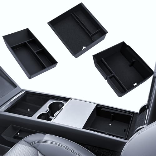 LANTU Lot de 3 accessoires pour Tesla Model Y 2025 Juniper - Organiseur de console centrale - Boîte de rangement pour accoudoir et boîte cachée (flocage)