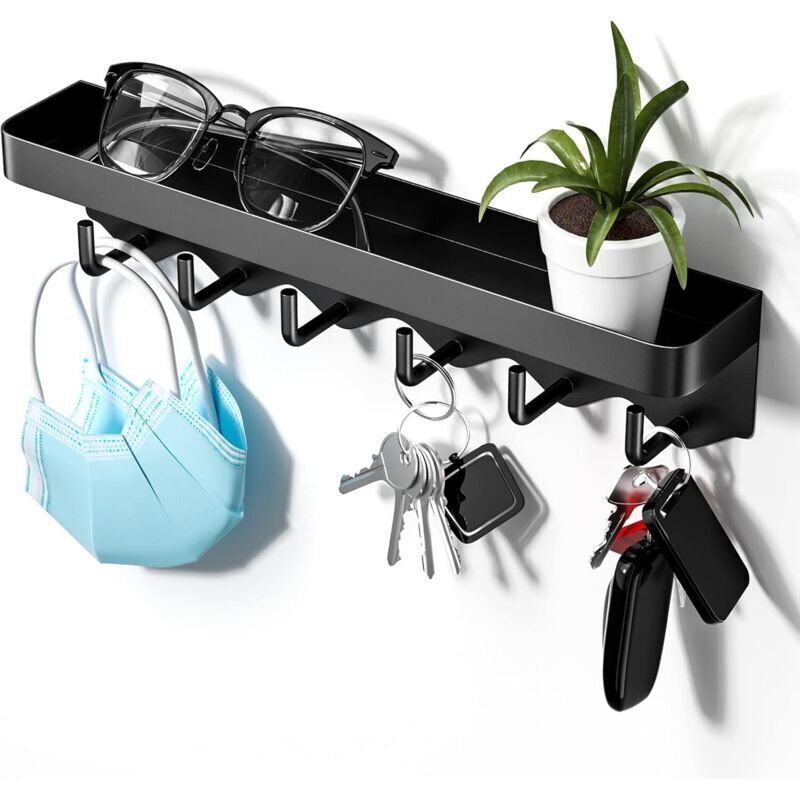 Porte clé mural à 6 crochets, petit accroche clef mural sans percer, boite a clefs murale decorative pour rangement des clés et courrier à l'entrée,