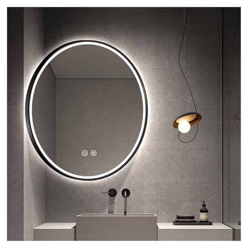 XTGDIEM Miroir d'angle Rond Mural avec Lumière LED Et Désembueur, Adapté Aux Salles De Bains Chambres, Peut Être Accroché Verticalement Ou Horizontalement(Black,70x70cm)