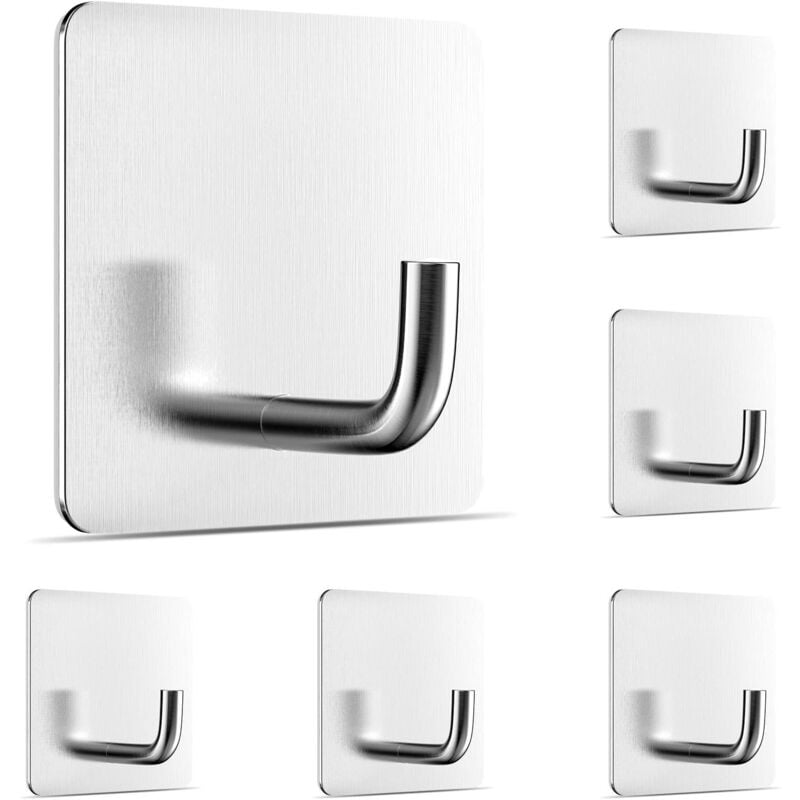6 Pièces Crochets Adhesifs Acier Inox, Crochet Mural Sans Percer, Crochet Kit pour Accroche Salle deBain, Cuisine, Plafond, Accrocher, Mural, Porte,