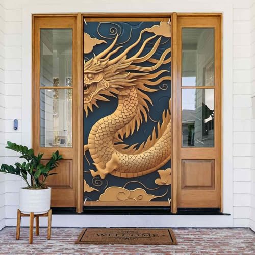 ZSUUGJ Rideau de porte réutilisable motif dragon chinois pour décoration intérieure et extérieure facile à accrocher pour les fêtes, anniversaires et vacances