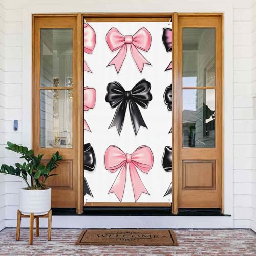 Rideau de porte réutilisable avec nœud rose pour décoration intérieure et extérieure facile à accrocher pour les fêtes, anniversaires et vacances