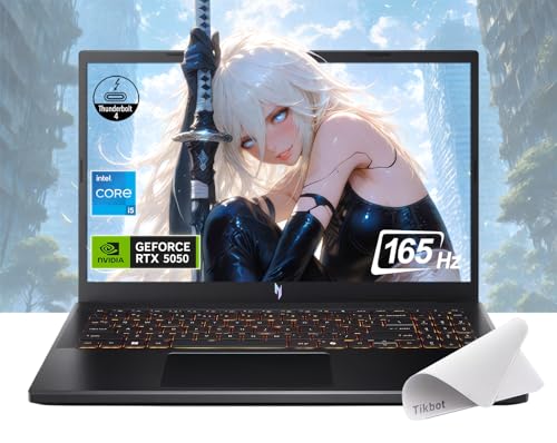 acer Nitro V Ordinateur portable de jeu FHD IPS 165 Hz, Intel Core i5-13420H, NVIDIA GeForce RTX 5050 avec 8 Go de RAM GDDR7, avec tapis de souris (16 Go de RAM | SSD PCIe 1 To + pro)