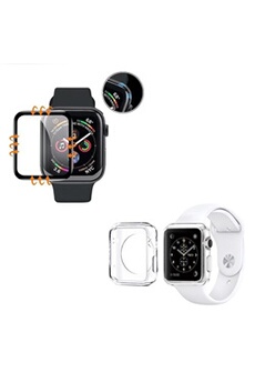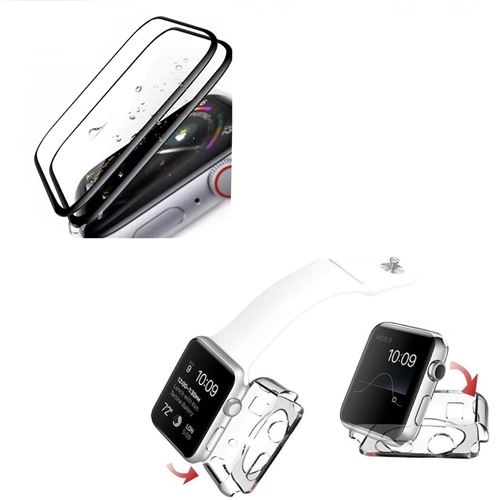 Lot de 2 verres trempé 3D noir protection écran APPLE WATCH 44MM SERIE 6 et une coque silicone