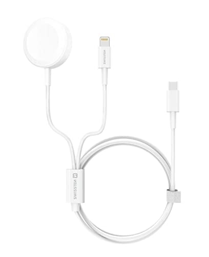 Swissten - Câble magnétique, Lightning et USB‑C pour une charge rapide d'Apple Watch et iPhone (1,2m) - Blanc
