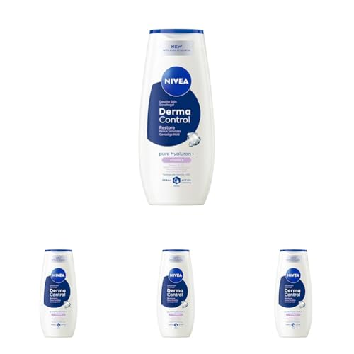 NIVEA - Gel Douche Corps Derma Control Restore - Douceur & Soin - Enrichi En Acide Hyaluronique Pur & Vitamine E - Parfum Hypoallergénique - pH Neutre - Peaux Sensibles - 250 ml (Lot de 4)