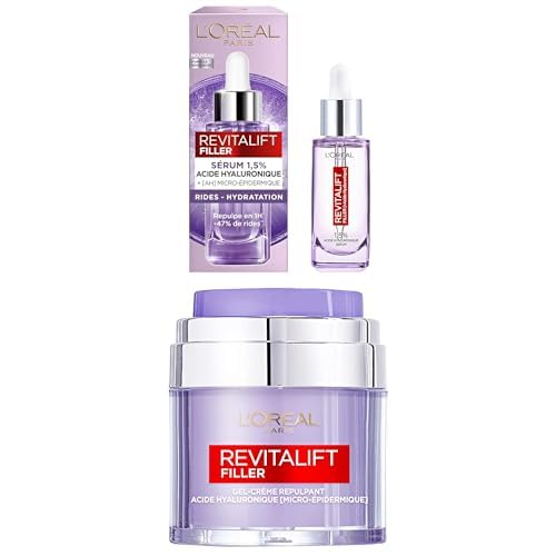 Routine Anti-Rides Repulpante L'Oréal Paris - Sérum Anti-Rides & Anti-Âge – 1.5% Acide Hyaluronique Pur 30 ml et Gel-Crème Repulpant – Soin Hydratant & Anti-âge 50ml - Pour Tous Types de Peaux