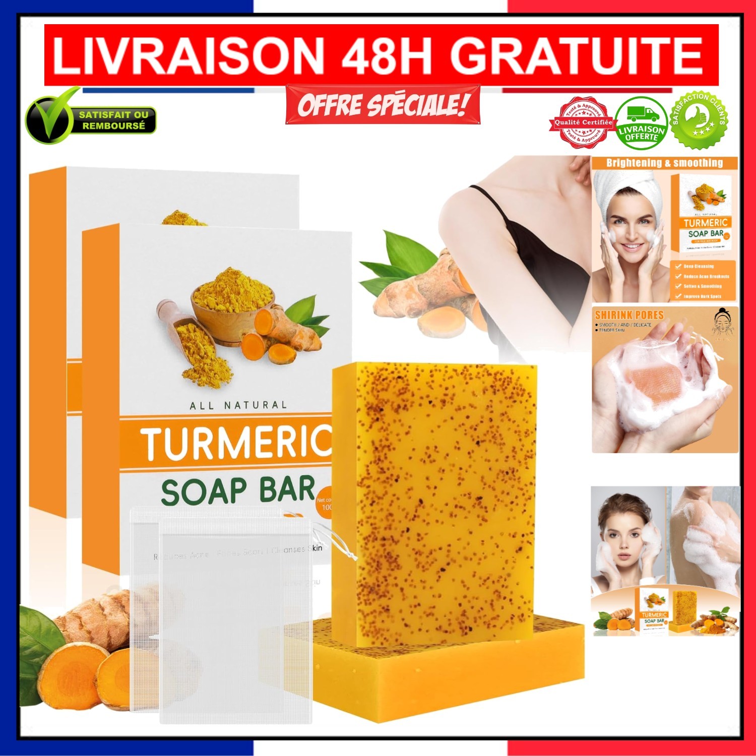Savon Naturel au Curcuma et Acide Kojique - Peau Lisse et Éclatante, 2 pièces