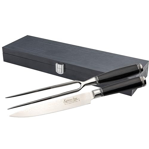 Katana Saya Ensemble couteau et fourchette à découper, acier VG-10 Damas, manches en bois de pakka, argent