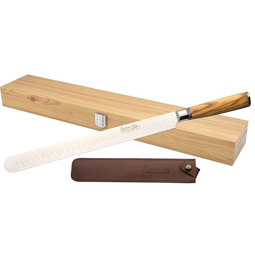Katana Saya Couteau à jambon 30 cm, acier inoxydable Damas VG-10 67 couches, manche en bois d'olivier