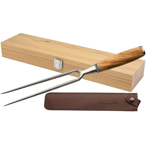Fourchette à découper Katana Saya 18 cm, acier VG-10 Damas, manche en bois d'olivier