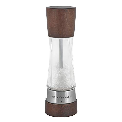 Cole & Mason Derwent Moulin à Poivre Réglable, Mécanisme de Précision+, Acrylique Transparent et Bois de Hêtre, 6 Réglages de Moutures, Moulin à Épices Rechargeable, Manuel, Bois Foncé 19 cm