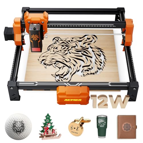 Acmer S2 12W Laser Graveur,72W(12000mv) Graveuse Laser,300 X 300Mm Machine De Gravure,Decoupe Laser De Haute PréCision à 0,01 Mm Et DéCoupe,Machine Gravure Laser Pour Planche En Bois/Acrylique/Cuir