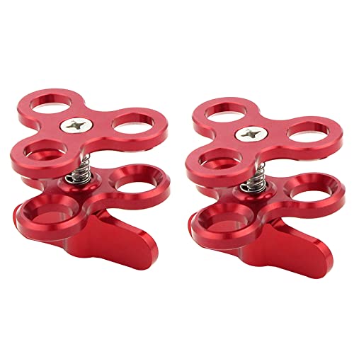 ISTOVO 2X Pince à Boule 3 Trous Lampes de Plongée Bras Boule Papillon Clip Support de pour Action Caméra Lampe de Poche Trépied, Rouge
