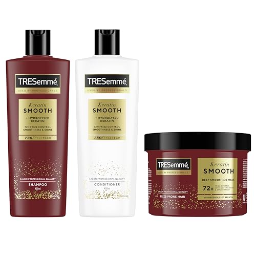 TRESemmé Keratin Smooth Set avec Shampooing, Après-Shampooing et Masque, Pour Cheveux Lisses, Cheveux Brillants, Doux et Démêlés, Action Anti-Frisottis Jusqu'à 72H, 400ml + 400ml + 440ml