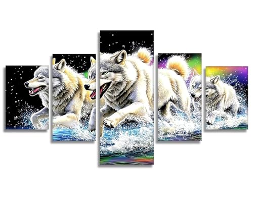 5 Pièces Diamond Painting Adulte Loup, Animal 5D Peinture Diamant Painting Activite Creative Adulte Diamond-painting Numero D'art Strass Kit Broderie pour Decoration Maison Murale 200x100cm, Model381