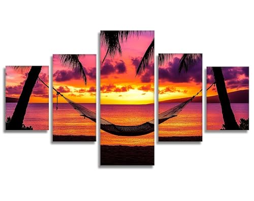 5 Pièces Diamond Painting Adulte Coucher de soleil, Plage 5D Peinture Diamant Painting Activite Creative Adulte Diamond-painting Numero D'art Strass Broderie pour Decoration Maison 125x60cm, Model393