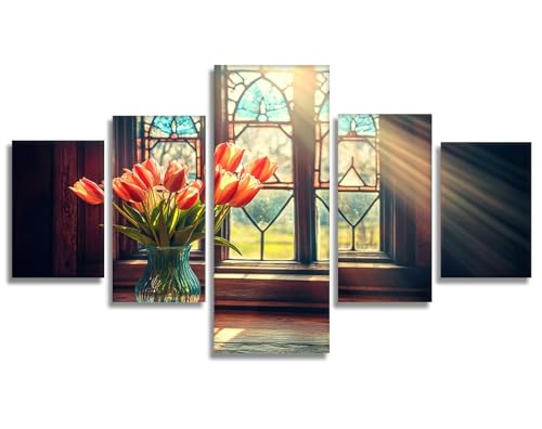 5 Pièces Diamond Painting Adulte Tulipe, Vase Peinture Diamant Painting Activite Creative Adulte, DIY Diamond-painting Numero D'art Strass Kit Broderie pour Decoration Maison Murale 100x50cm, Model429
