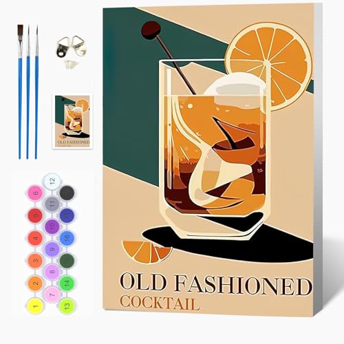 Auremi Kit Cocktail peinture par numéros avec cadre bois–Cocktail Peinture par numéros 20x30 cm pour adulte débutant–Idée cadeau originale relaxante–Activité manuelle créative et décorative