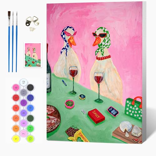 Auremi Kit Canard peinture par numéros avec cadre bois–Rétro Peinture par numéros 20x30 cm pour adulte débutant–Idée cadeau originale relaxante–Activité manuelle créative et décorative