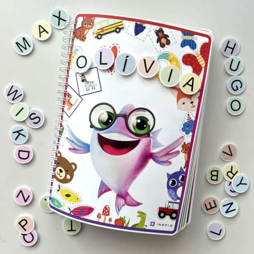 INSPIO Livre Montessori XXL pour enfants (64 pages, 233 accessoires) – lavable, résistant, personnalisé avec prénom – activités éducatives 2–7 ans