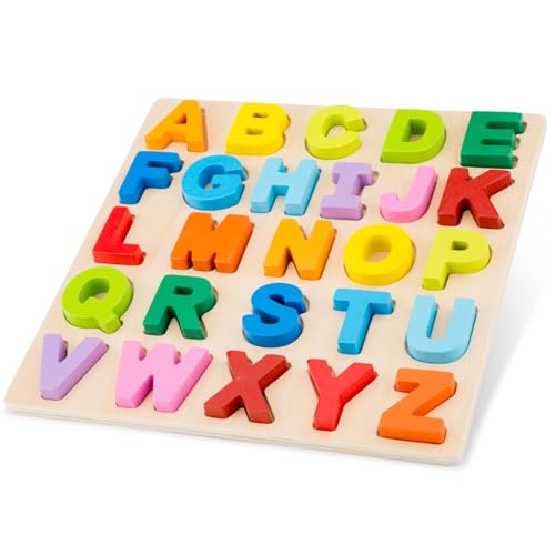 Woet® Puzzle Alphabet A à Z, Lettres Majuscules, Jouet en Bois, Méthode Montessori, Apprentissage ABC, Éducatif, Maternelle, Couleurs, Motricité Fine, Coordination Main Œil, À Partir de 2 Ans