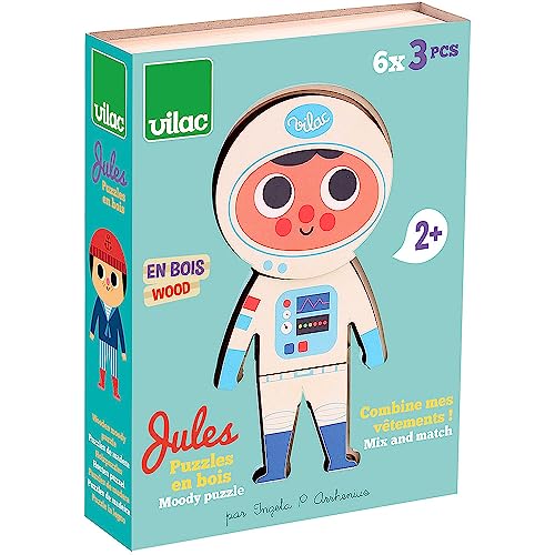 Vilac - Puzzles Jules à Habiller - Ingela P.Arrhenius - Jouet en Bois - Jeu Educatif - Jeu d'Imagination - Méthode Montessori - pour Enfants à Partir de 2 Ans, Bleu