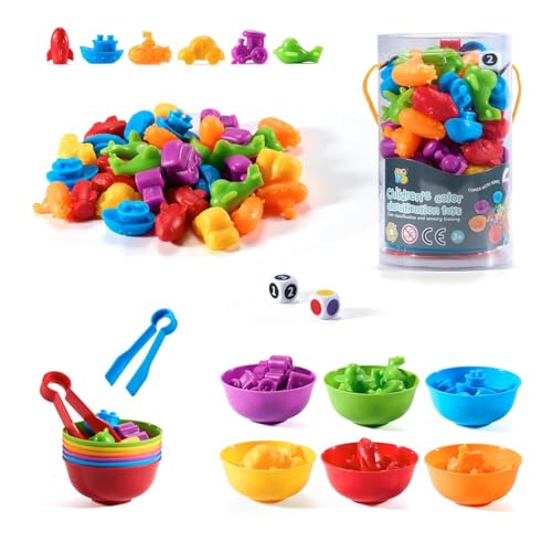 Jeu Éducatif, 47 Pièces Jouet pour Comptage et Tri Jeu Educatif Motricité, Jouet Montessori 2-6 Ans sans BPA, Apprentissage Formes et Motricité(Couleur Aléatoire)