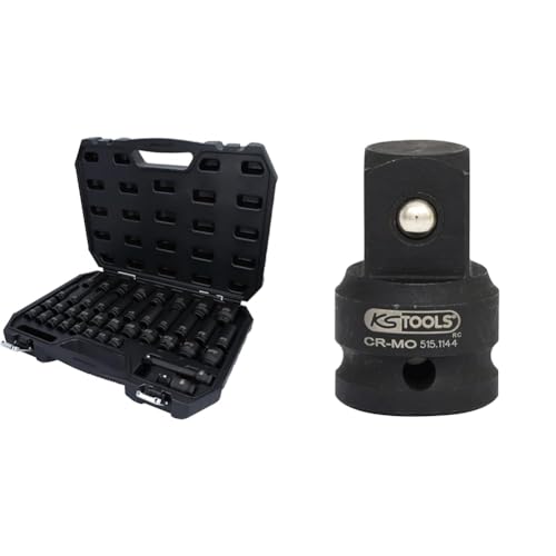 KS Tools 515.0065 douills et ensemble de douilles & 515.1144 Augmentateur À Chocs, Adaptateur De Douille 1/2'' - 3/4'' - Pour Tournevis Manuel, Clé Perceuse, Clé À Percussion - En Chrome Molybdène