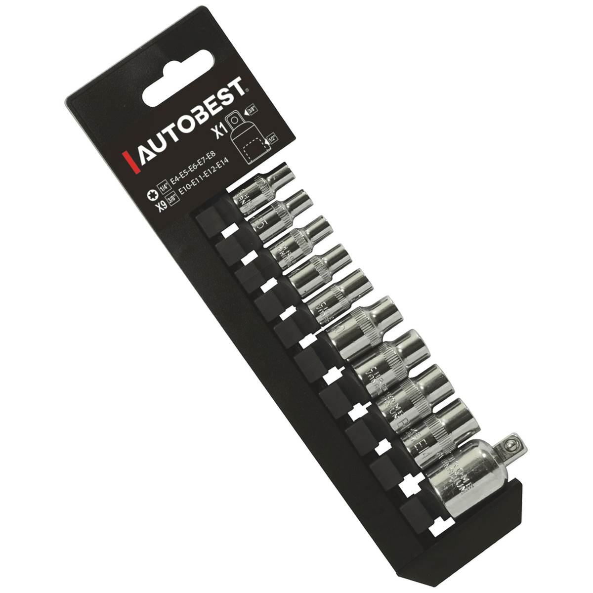 Jeu 9 Douilles, Torx, Femelles, 1/4 3/8 Et Adaptateur 1/2 Autobest