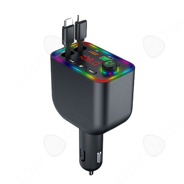 Adaptateur Bluetooth 5.3 80,5 W pour voiture, allume-cigare 3 en 1, émetteur USB & FM, avec câble rétractable de type C de 1 m, 24 V/12 V, adaptateur USB voiture avec kit mains libres pour iPhone