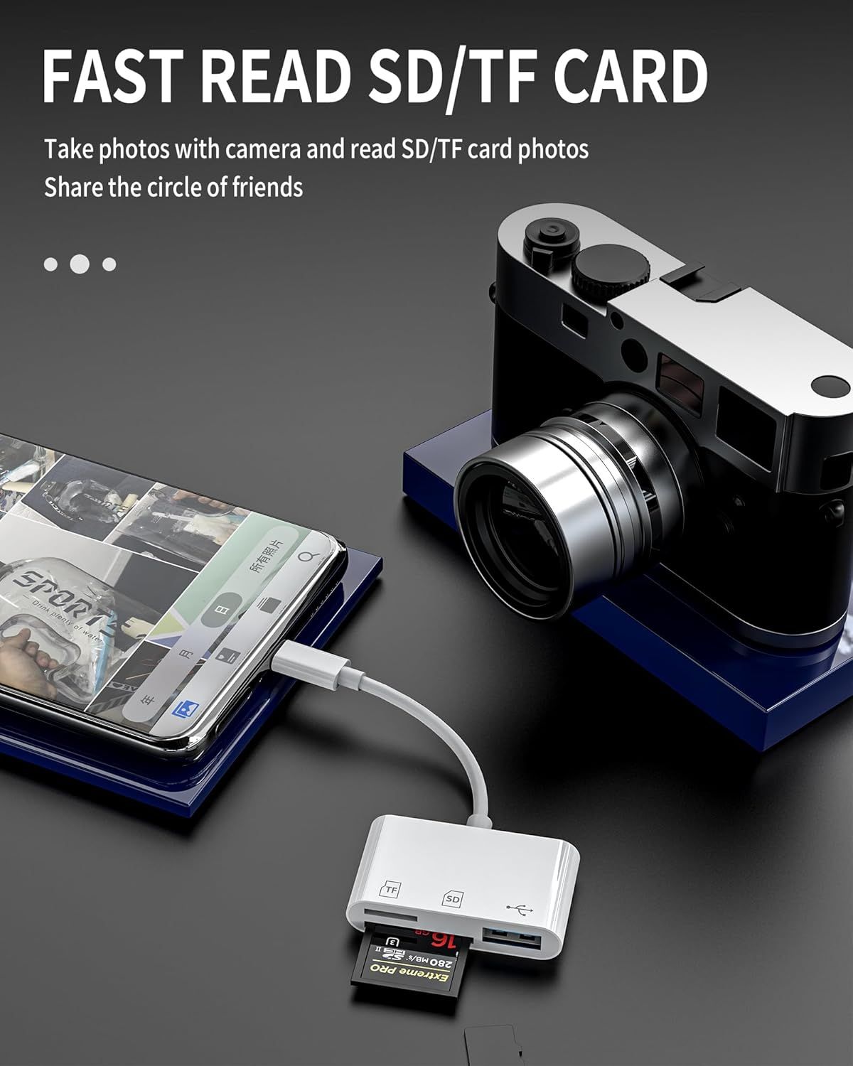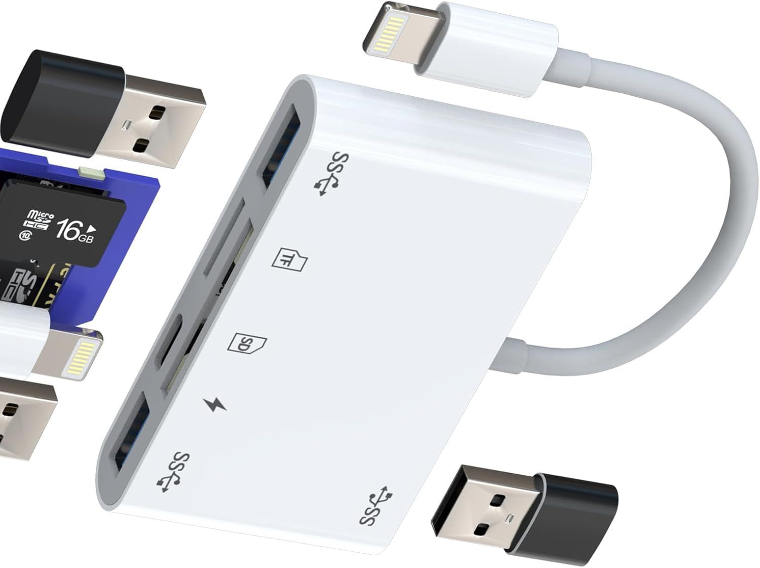lbgwp60-Adaptateur Lightning Pour Apple Iphone 14 13(6 En 1)Câble Usb Otg 3.0 Lecteur De Carte Sd Pour Ipad Micro Sd Carte Lecteur Macbook Caméra Tf Mémoire Photographique Extérieure Téléphone Port T