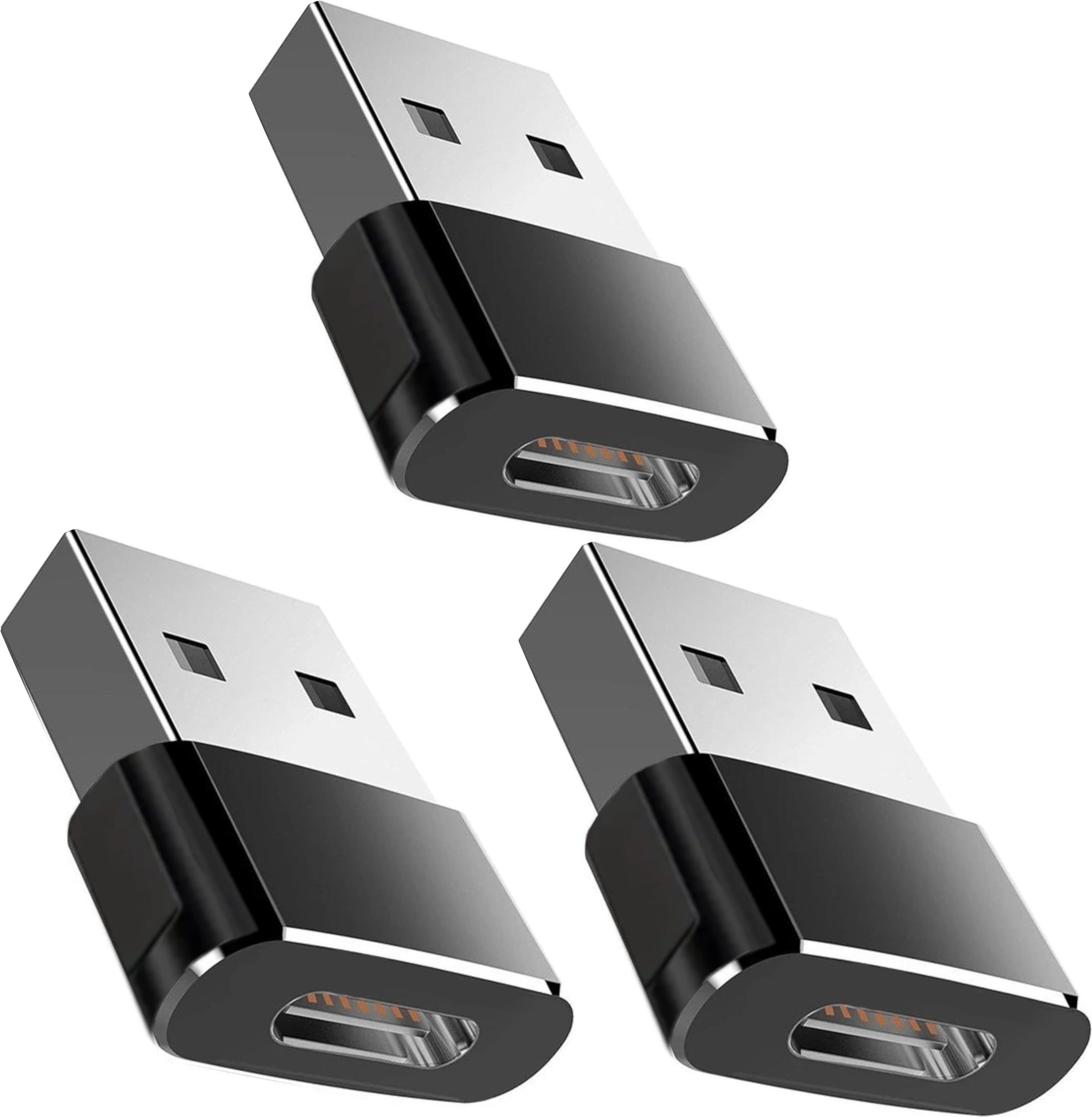 3x USB 3.1 Type-C femelle vers USB mâle Adaptateur compatible avec Apple Iphone 16 Pro Plus 15 Pro Plus | USB-C vers USB-A Convertisseur Type C Chargeur d'alimentation | 3pcs noir