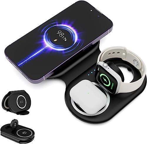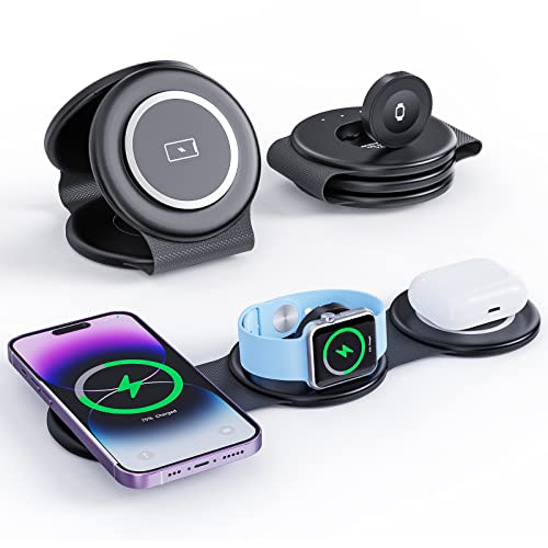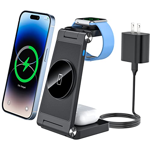 Tiergrade 3 en 1 Chargeur sans Fil pour appareils Apple Multiples, Station de Charge magnétique Pliable, Charge de Voyage pour iPhone 15/14/13, AirPods 3/2/Pro/Pro2, iWatch(Adaptateur Inclus) Noir