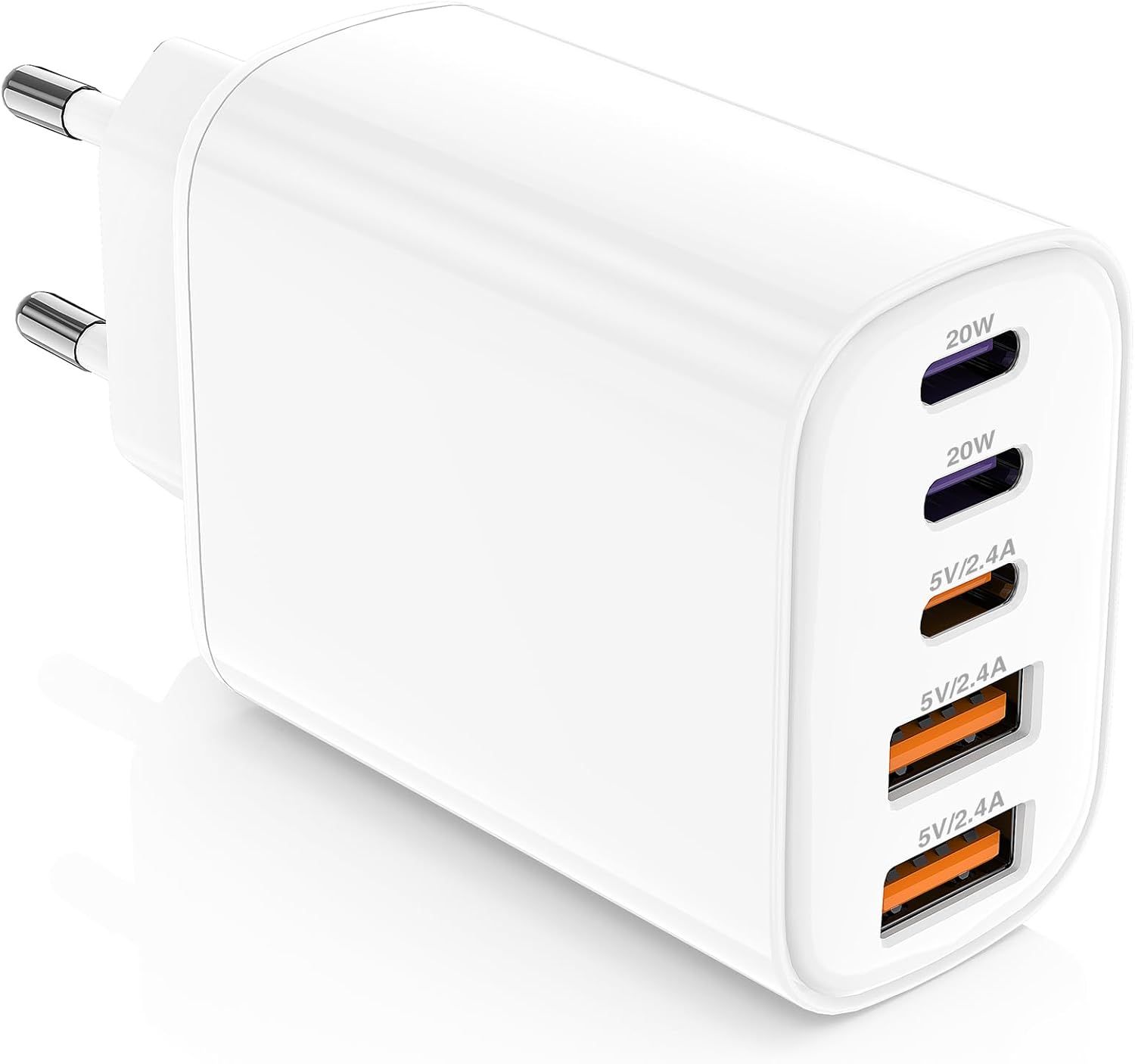 JGD-Rapida Chargeur USB C, Multiple 5 Port Prise USBC Chargeur Rapide iPhone, Multi Secteur USB A&Type C Adaptateur pour Orginal Apple iPhone 16 15 14 13 12 11 Pad Pro Max X XS XR 8 7 6S Plus Mini SE