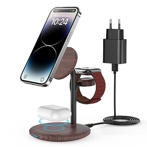 Station de Charge Mag Safe, Station de Charge 3 en 1 pour Apple Watch et iPhone, Compatible avec de Charge Mag Safe Adaptateur, iPhone 15 14 13,iWatch Ultra 2/1,Series 9,AirPods