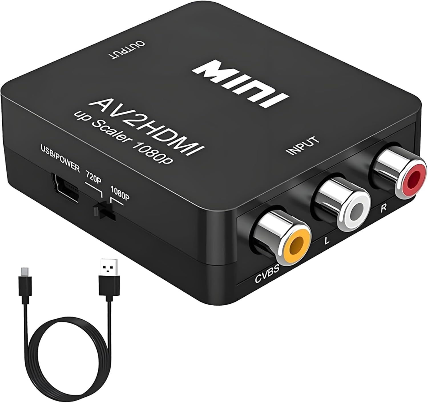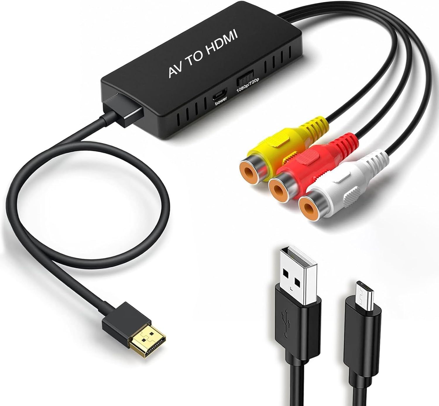 Adaptateur AV Vers HDMI, Convertisseur RCA Vers HDMI Pour Lecteur VHS, PS2, PS3, Xbox, N64, STB, VCR, DVD - Compatible Avec HDTV, Moniteur, Projecteur