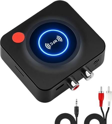 Recepteur Bluetooth 5.3, Adaptateur Bluetooth avec RCA 3,5 mm Jack AUX, Stereo Audio HiFi Receiver pour Voiture, Smartphone, Tablette, Enceinte Home Cinema, Batterie Intégréem, avec Fonction NFC