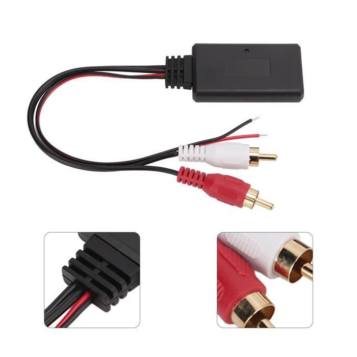 Adaptateur universel sans fil Bluetooth - Adaptateur AUX audio 2 RCA - Câble auxiliaire pour autoradio - Adaptateur AUX - 2 câbles RCA - Câble audio Bluetooth - Connexion autoradio