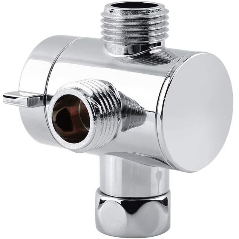 Vanne de dérivation en laiton chromé 3 voies G1/2 mâle – Adaptateur en T pour robinet de douche, inverseur d’eau salle de bain
