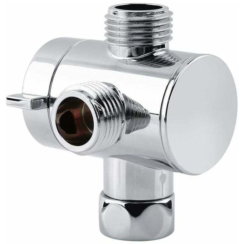 Vanne de dérivation à 3 voies pour douche 20 mm G 1/2" Robinet à soupape Inverseur Vanne de dérivation Laiton Adaptateur de douche Chrome poli
