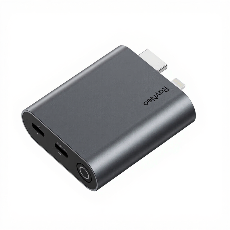 RayNeo Adaptateur HDMI pour iPhone 14 et appareils Lightning/HDMI antérieurs, batterie intégrée, prend en charge la charge et la lecture, vidéo 1080P@120Hz et 4K@30Hz, compatible avec lunettes Air 3s / Air 2s / Air 2 XR
