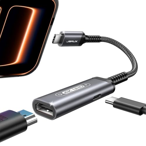 JSAUX Adaptateur de Chargeur USB C vers HDMI avec PD, 2 en 1 Type C vers HDMI 4K @ 30 Hz/100 W, Compatible avec iPhone 16 Pro/16 Pro Max/16/16 Plus/15 Pro Max, Samsung S24/S23, MacBook, Dell, Steam