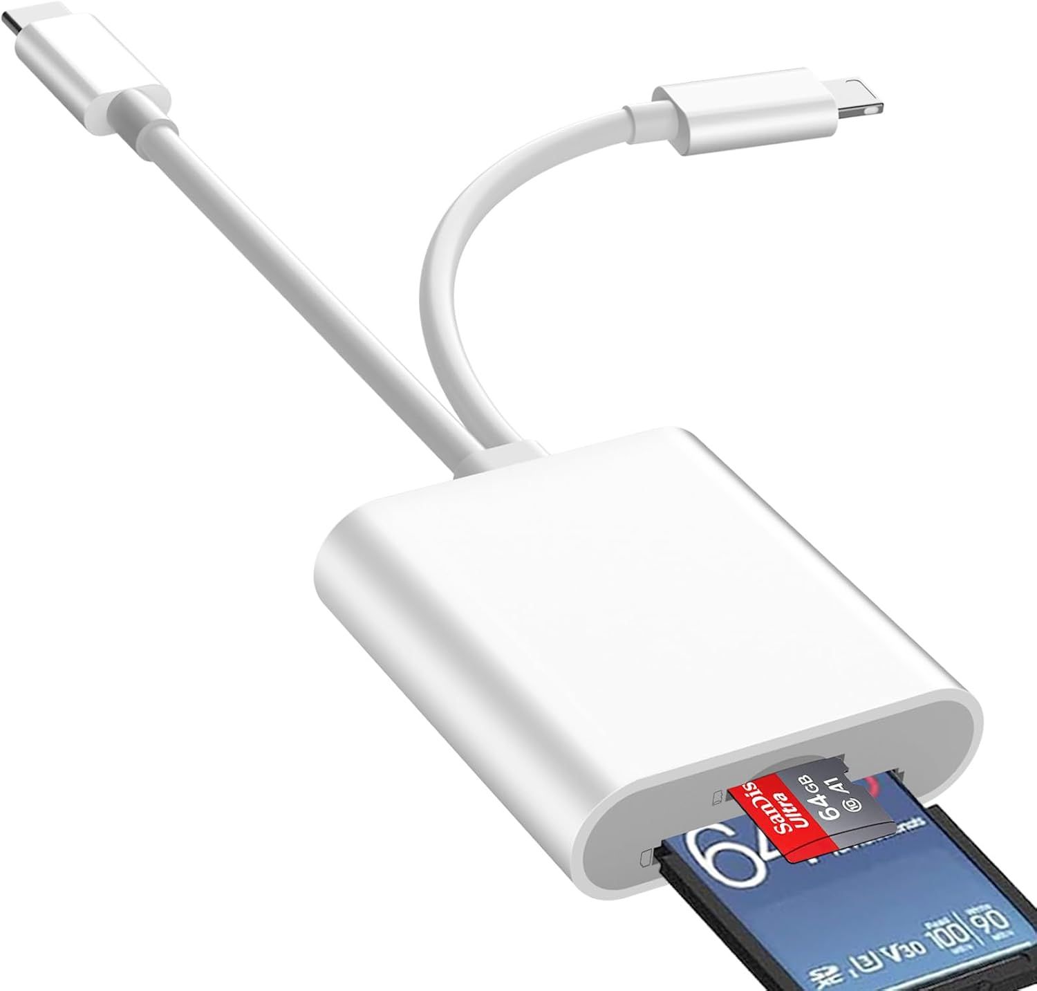 Lecteur Carte SD iPhone,2 en 1 Lightning to SD Card Reader,Adaptateur iPhone Carte SD,Adaptateur Carte SD iPhone,Lecteur de Carte SD pour iPhone,Adaptateur SD iPhone