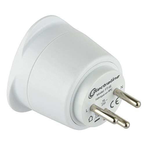 Electraline 70051 Adaptateur de voyage France/Europe vers Italie 2 Broches Europe vers 3 Broches Italie, White